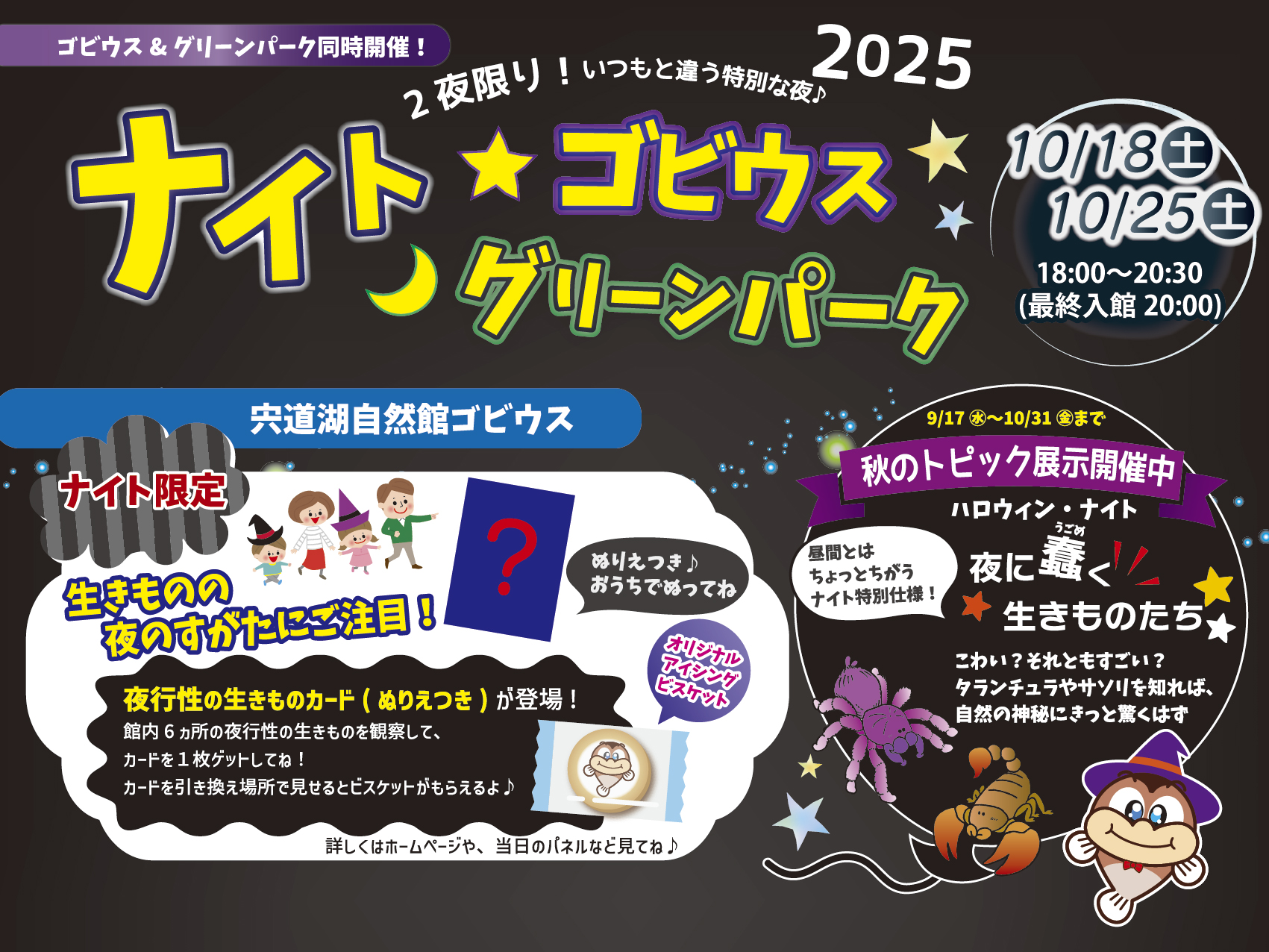 2025年10/1(水)〜好評につき10/31(金) 火曜日は休館日です。 ※ナイトゴビウス開催時間(10/18・10/25の18:00〜20:30)は中止します。 |