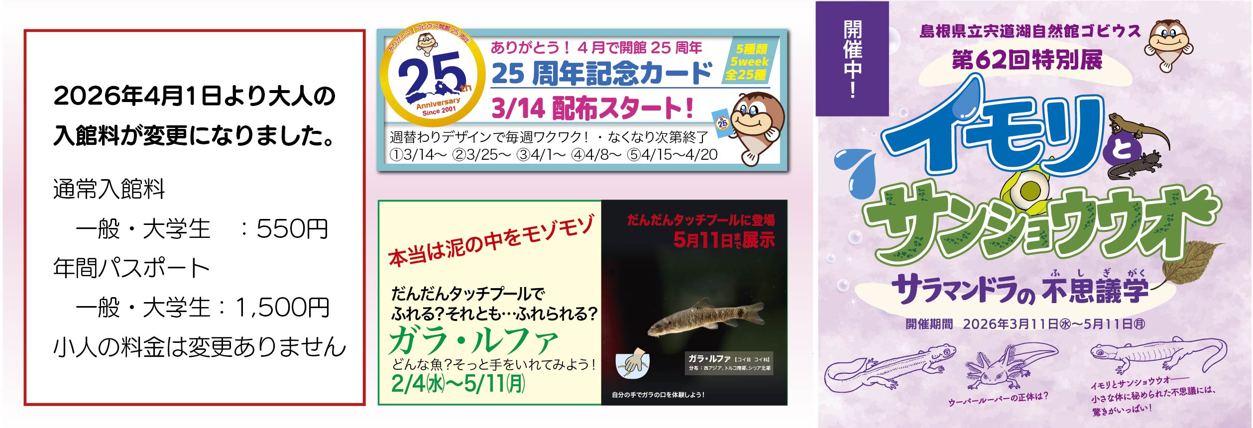 【お知らせ】2026年4月1日より大人の入館料が変更となります