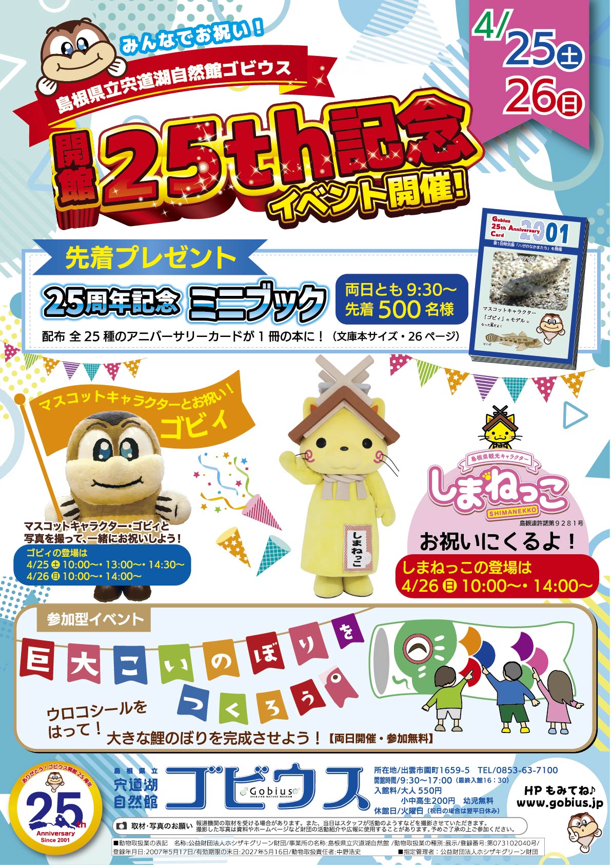 おかげさまで、ゴビウスは4月21日に開館25周年を迎えます。これまでの感謝を込めて、特別なプレゼントや楽しいイベント開催の2日間!