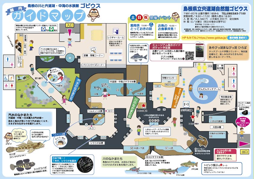 ゴビウス館内マップとゴビウス周辺からおとなり宍道湖グリーンパークまでのマップです。
